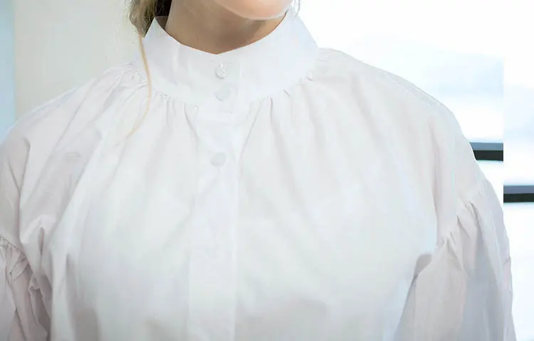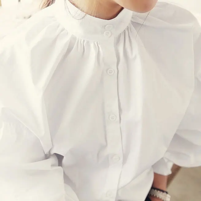 Buy Women Lantern Sleeve Blouse Ladies Fashion Long Cotton Tops Female Vintage Oversize Loose Stand Col
