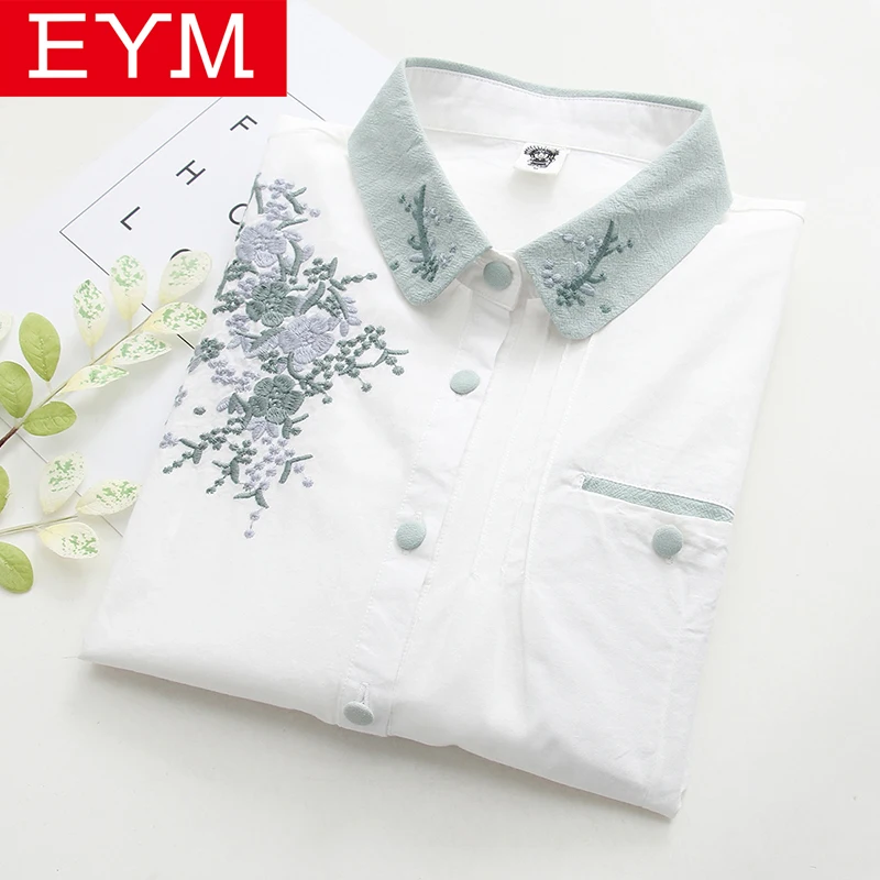 Promo Floral Embroidery Women's Shirt 2019 Spring New Fashion Women Blouse Long Sleeve White Casual Shirt