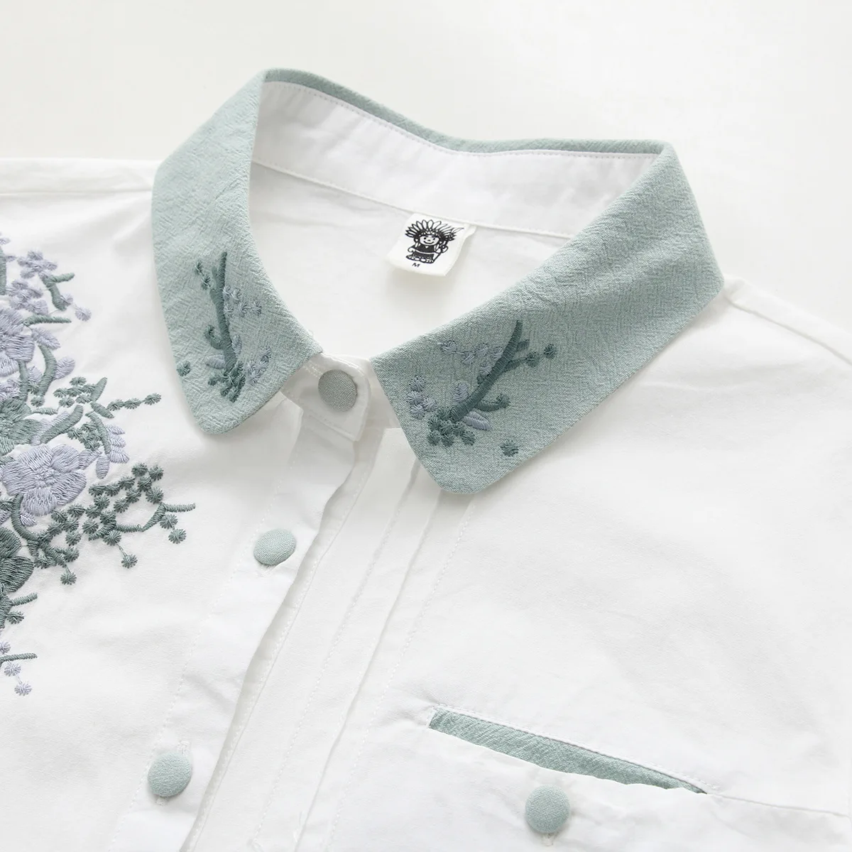 New Floral Embroidery Women's Shirt 2019 Spring New Fashion Women Blouse Long Sleeve White Casual Shirt
