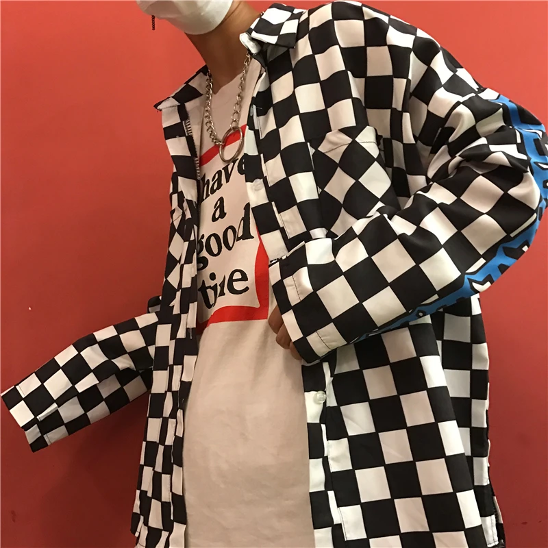 Today i want to review about Harajuku retro black and white Plaid shirt flame check Blouses Cardigan Unisex Couples Single-breas. I uncover this cool product from China Online Store, best manucafturer.