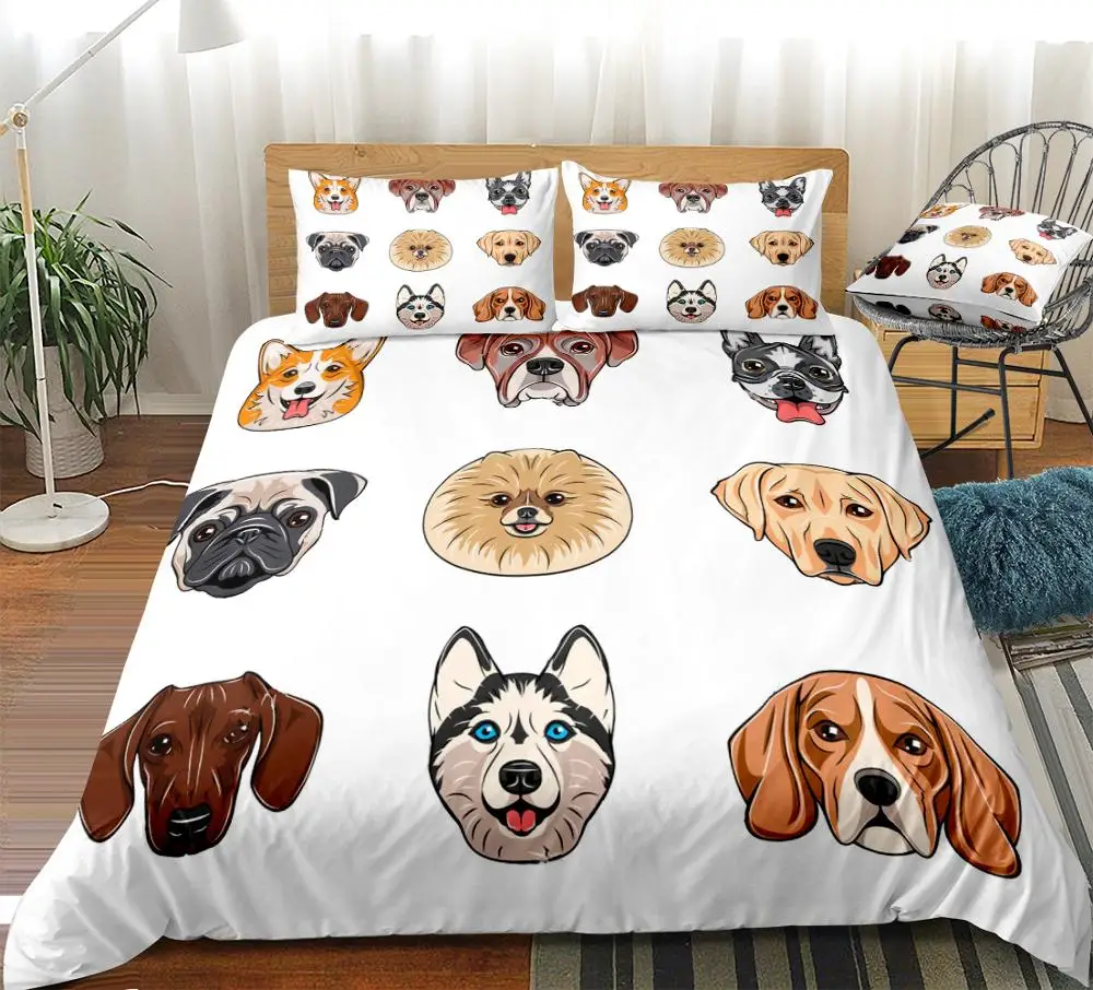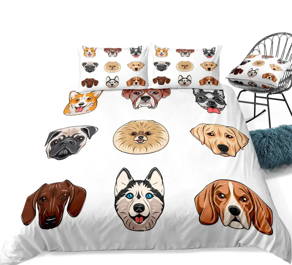 New Cartoon Dog Faces Duvet Cover Set Different Breeds of Cute Dogs Bedding Kids Animal Quilt Cover Pet