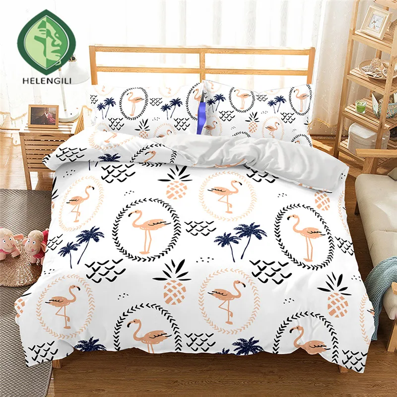 Promo HELENGILI 3D Bedding set Flamingo Print Duvet cover set lifelike bedclothes with pillowcase bed set