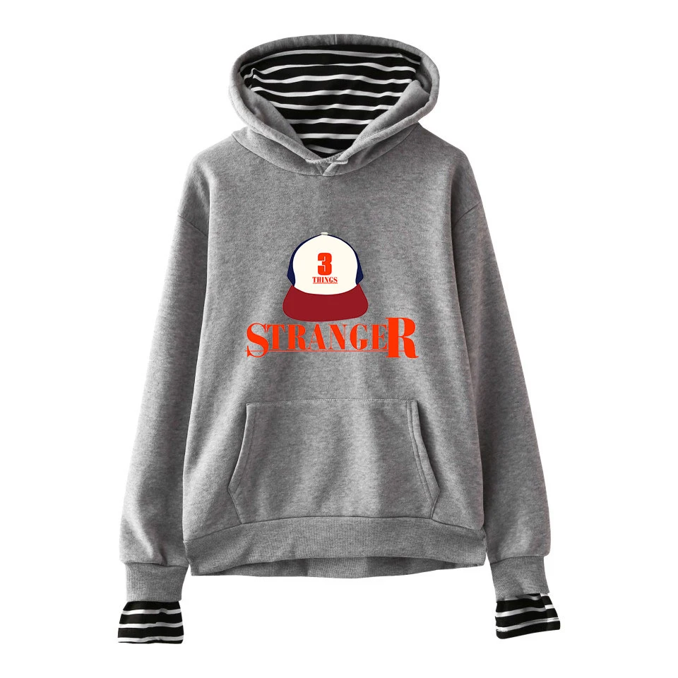 Promo Sexy Girl Design Stranger Things Hoodies Women Harajuku Cute Stripes Female Fake Two-piece Sweatshi